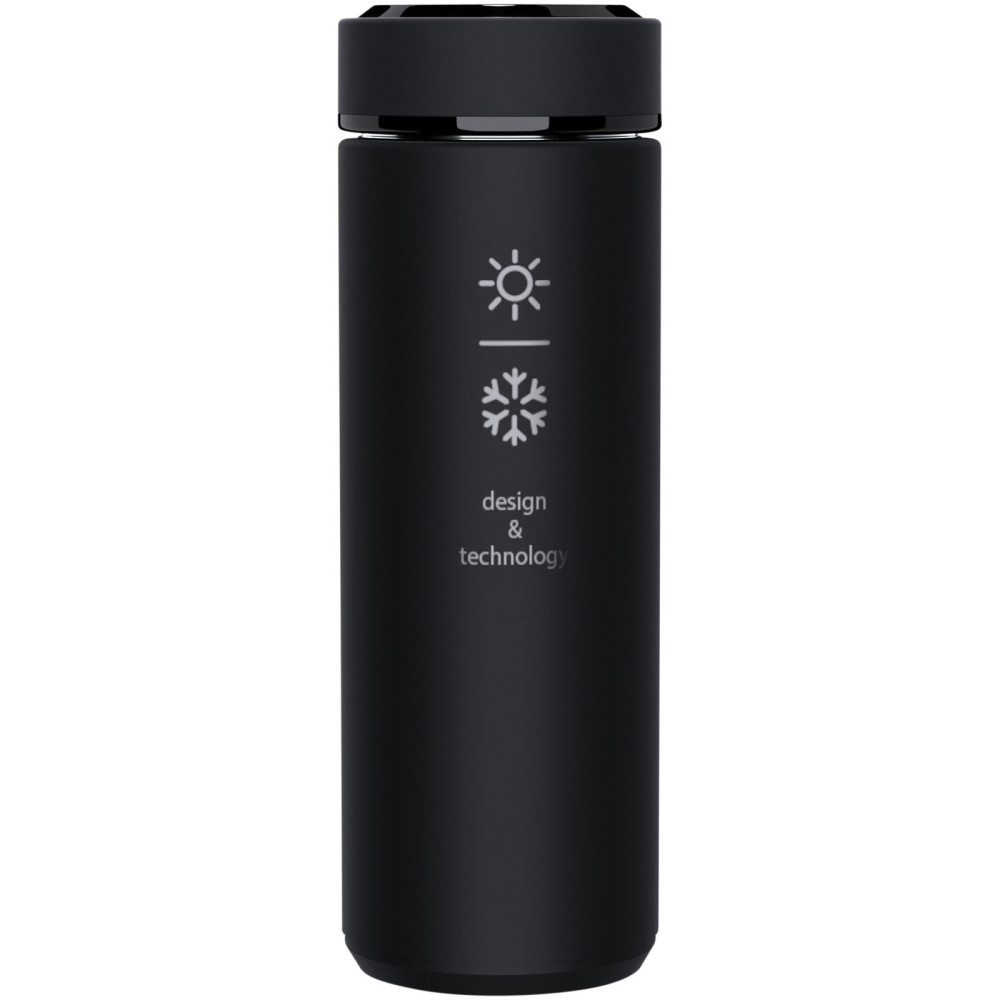 SCX.design D10 isoleret smart-flaske Kontakt os for pris Firmalogo kan tilføjes på dette produkt 450 ml isoleret flaske af rustfrit stål med dobbeltvæg og temperatursensor. Takket være “Touch & Light”-systemet vises drikkens temperatur på flaskedækslet (i Celsius). Velegnet til både varme og kolde drikke. Leveres i en cylindrisk gaveæske fremstillet af genbrugspapir. Størrelse: Ø 47 x 225 mm. Batteri inkluderet: CR 2450 (3 V). Batteriet kan ikke udskiftes. Kan vise temperatur 20.000 gange. Farver Ensfarvet sort Søger du reklameartikler og profiltøj? Kontakt vores team i dag, og lad os hjælpe dig med den rigtige løsning til din virksomhed 70 260 760 Kontakt os 70 260 760 Kontakt os
