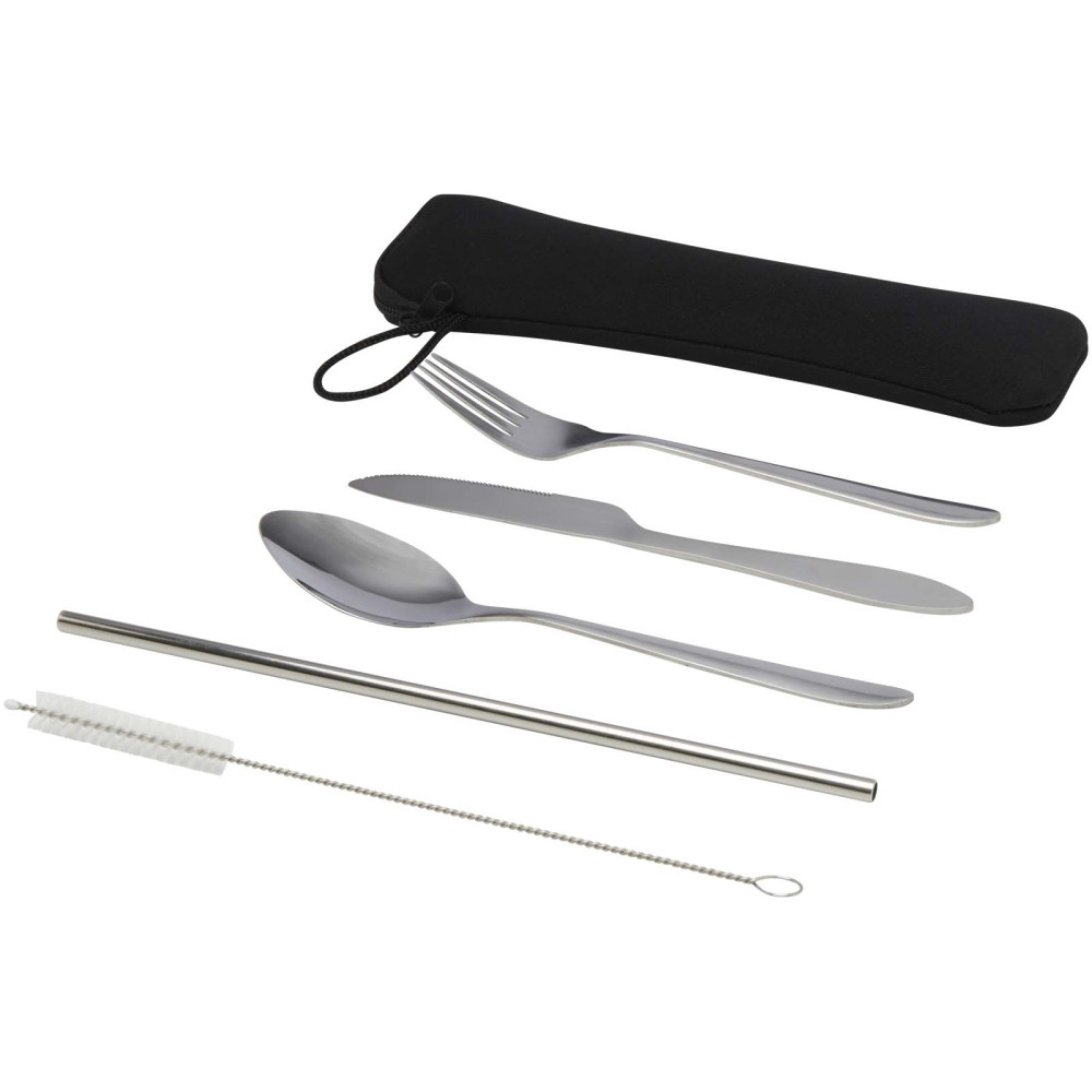 Sheen 5-delt bestiksæt i rustfrit stål Kontakt os for pris Firmalogo kan tilføjes på dette produkt Bestiksæt med gaffel, kniv, ske, sugerør og rensebørste. Bestikket er lavet af rustfrit stål, der er slidstærkt og nemt at rengøre. Leveres i en polyesterpose med lynlås og en praktisk bæreløkke. Farver Sølv Søger du reklameartikler og profiltøj? Kontakt vores team i dag, og lad os hjælpe dig med den rigtige løsning til din virksomhed 70 260 760 Kontakt os 70 260 760 Kontakt os