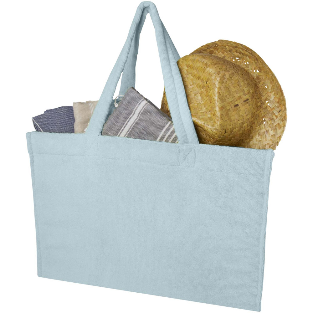 Siam GRS genanvendt mulepose i terry til stranden 13 L Kontakt os for pris Firmalogo kan tilføjes på dette produkt Som blød, stilfuld og fantastisk alsidig er denne mulepose fra Siam i terry den perfekte ledsager til sommeren. Som fremstillet af blødt GRS certificeret terry (88 % genanvendt polyester, 12 % polyamid) giver den en hyggelig men let følelse, der er perfekt til udflugter i varmt vejr. Designet med et 27 cm drop-down håndtag gør dem nem at bære og byder på en rummelig kapacitet på 13 liter, denne mulepose er både praktisk og smart. Uanset om du er på vej til stranden, slentrer gennem byen eller går ærinder, giver muleposen af terry fra Siam et afslappet men alligevel raffineret touch til ethvert look. Farver Syrenfarvet Sky blå Marineblå Limefarvet Søger du reklameartikler og profiltøj? Kontakt vores team i dag, og lad os hjælpe dig med den rigtige løsning til din virksomhed 70 260 760 Kontakt os 70 260 760 Kontakt os