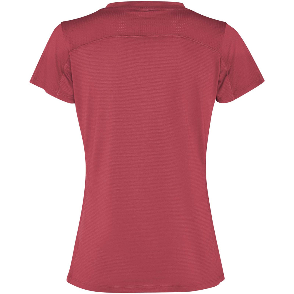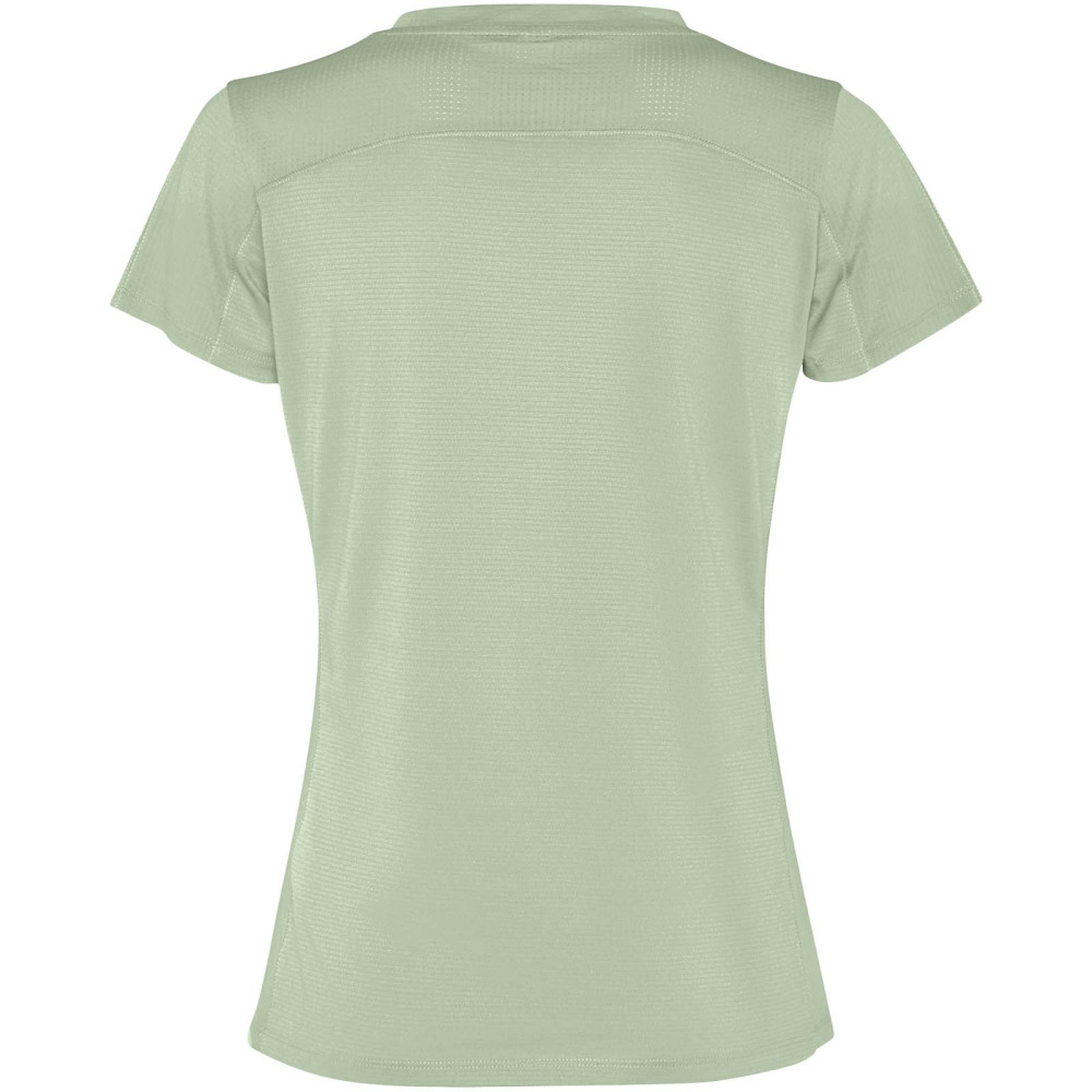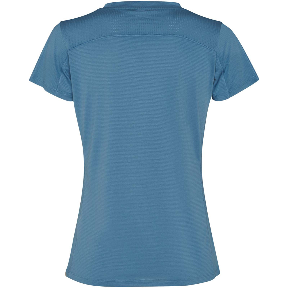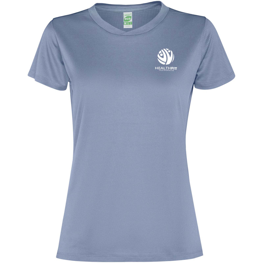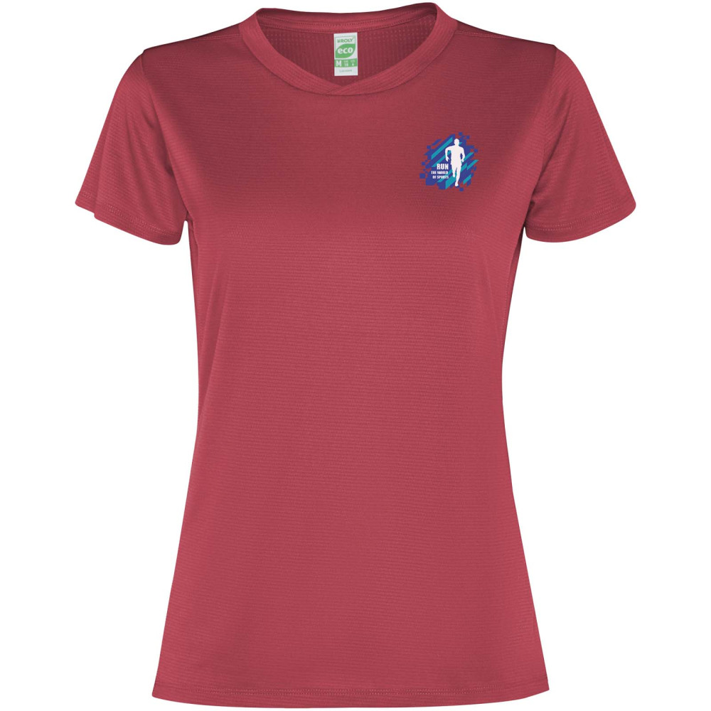 Imola kortærmet sports t-shirt til kvinder Figursyet teknisk kortærmet T-shirt i genanvendt CONTROL-DRY polyester. Rund hals med matchende dækkede sømme. ECO logomærke på ærmet. Aftagelig ECO etiket. Indpakning i genbrugsmateriale. Teknisk stof. Modellen er 170 cm og er iført str. S.