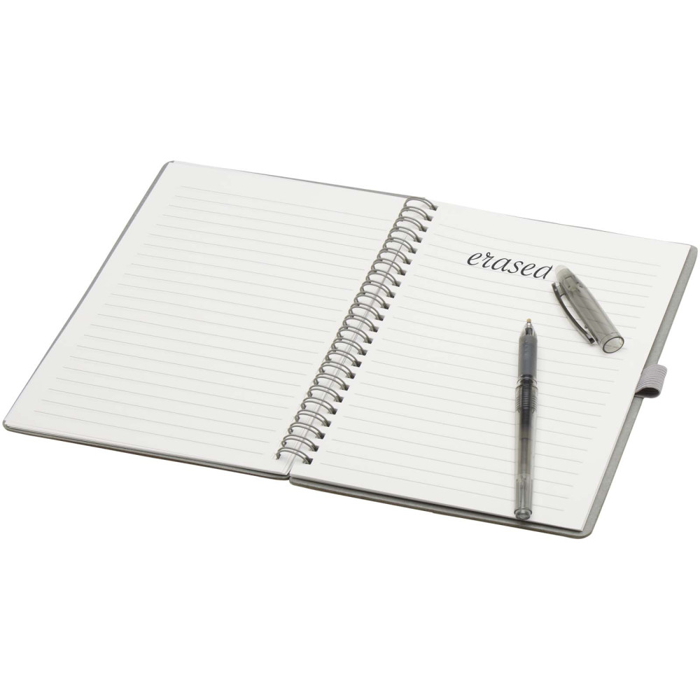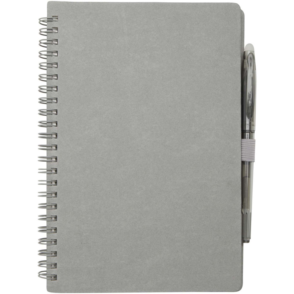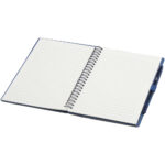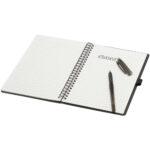 Slate genanvendelig A5 notesbog sæt med hard cover og med pen (sort refill) Kontakt os for pris Firmalogo kan tilføjes på dette produkt Hard cover A5 notesbog af genanvendeligt stenpapir i sæt med kuglepenne. Notesbogens omslag er lavet af pap, den har afrundede hjørner og 32 ark linjeret papir på 120 g/m². Stenpapir er 100 % træfrit, og produktionsprocessen bruger mindre energi sammenlignet med genbrugspapir eller nyt massepapir. Bagpå er der en lomme til at opbevare en sort aftørringsklud (medfølger). Viskbar pen af genvundet plast med gennemsigtig cylinder, hvidt viskelæder for oven og ensfarvet greb. Blækfarve: Sort Skrivelængde: 250 meter. Spidsstørrelse: 0,7 mm. Farver Marineblå Grå Ensfarvet sort Søger du reklameartikler og profiltøj? Kontakt vores team i dag, og lad os hjælpe dig med den rigtige løsning til din virksomhed 70 260 760 Kontakt os 70 260 760 Kontakt os