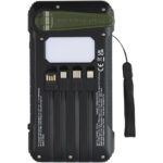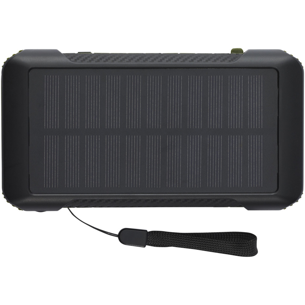 Soldy 10.000 mAh RCS powerbank af genvundet plast med solcelledynamo Kontakt os for pris Firmalogo kan tilføjes på dette produkt Soldy RCS genvundet plast med 10.000 mAh solcelle powerbank er den ideelle opladningsledsager til udendørs aktiviteter. Den er udstyret med en håndholdt krankdynamo til at generere strøm manuelt, hvis du løber tør for strøm, og der ikke er sollys. Powerbanken kan også oplades via Type-C eller micro USB porten på enheden. Takket være de indbyggede ladekabler med Type-C, iOS, USB-A og micro USB stik giver denne powerbank dig mulighed for at oplade de fleste smartphones, kameraer, powerbanks, øretelefoner etc. Powerbanken har en maksimal udgangseffekt på 2,4 A pr. port. Indgangseffekt er begrænset til 2 A. Leveres med en brugermanual og et 30 cm USB-A til Type-C opladningskabel og pakket i en 100 % genbrugskraftpapir æske. Farver Armygrøn Søger du reklameartikler og profiltøj? Kontakt vores team i dag, og lad os hjælpe dig med den rigtige løsning til din virksomhed 70 260 760 Kontakt os 70 260 760 Kontakt os