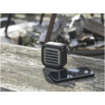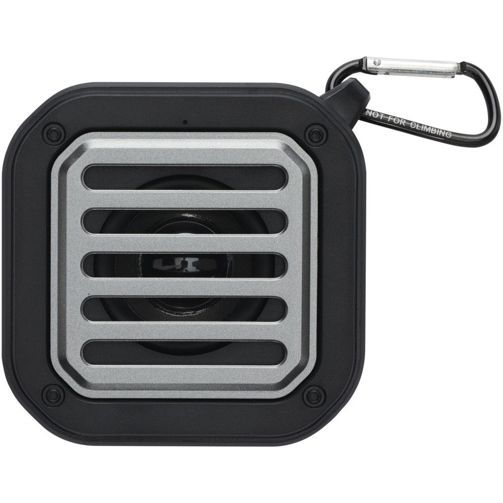 Solo IPX5 3W solar Bluetooth® højttaler i RCS genvundet plast med karabinhage Kontakt os for pris Firmalogo kan tilføjes på dette produkt Boost din musik med denne RCS genbrugte robuste solcelle 3W Bluetooth®-højttaler med lommelygte! Den afspiller musik, podcasts osv. fra enhver Bluetooth® aktiveret enhed, hvilket gør den til en ideel rejseledsager. Højttaleren har indbygget musikstyring og en mikrofon til telefonopkald, mens du er på farten, samt en praktisk lommelygte. Med den medfølgende karabinhage kan den nemt fastgøres til eksempelvis en rygsæk, og med IPX5 klassificeringen er højttaleren beskyttet mod kraftig regn. Takket være dets 400 mAh Li-ion batteri kan du nyde op til 3-4 timers musik ved maksimal lydstyrke. Opladningstiden er 2 timer med kabel og cirka 6 timer med solpanel (afhængig af sollysets lysstyrke/konsistens). Lommelygtens ydeevne er 10 timer, når højttalerfunktionen er slået fra. Bluetooth® 5.3 med en arbejdsrækkevidde på omtrent 10 meter. Leveres med en brugermanual og et 30 cm USB-A til Type-C opladningskabel og pakket i en 100 % genvundet kraftpapiræske. Farver Ensfarvet sort Søger du reklameartikler og profiltøj? Kontakt vores team i dag, og lad os hjælpe dig med den rigtige løsning til din virksomhed 70 260 760 Kontakt os 70 260 760 Kontakt os