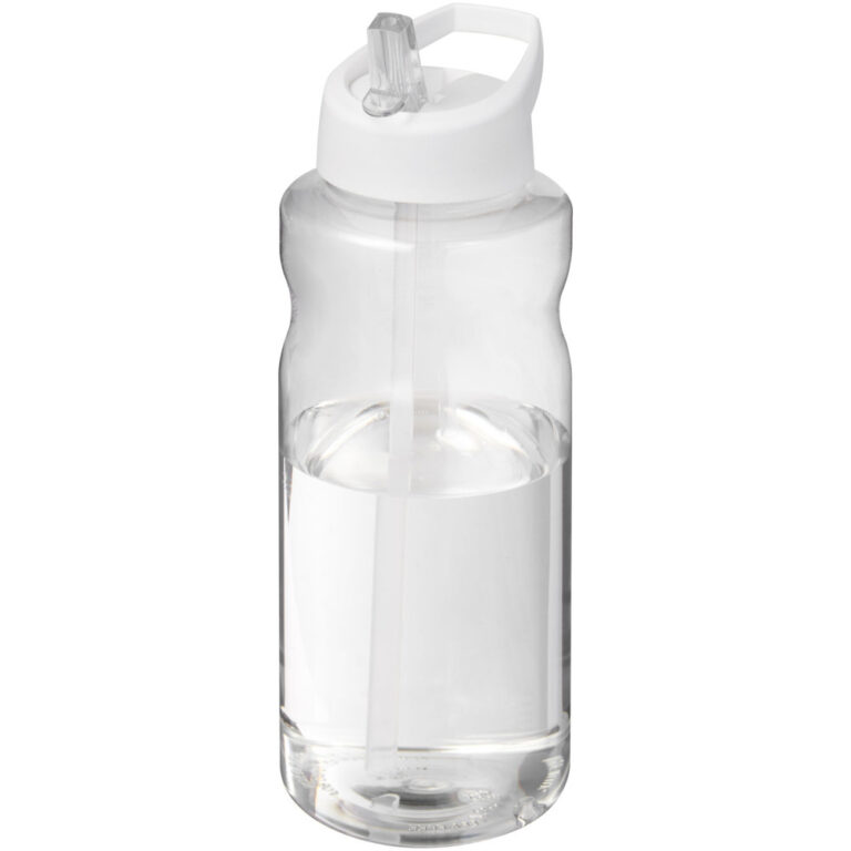 H2O Active® Big Base 1 liter vandflaske med låg med hældetud Enkeltvægget vandflaske med ergonomisk design, lavet af genanvendeligt PET materiale. Har et spildsikkert låg med flip-top drikketud. Volumen kapacitet er 1 liter. Produceret i UK. Pakket i en genvunden PE plastik pose. BPA fri.