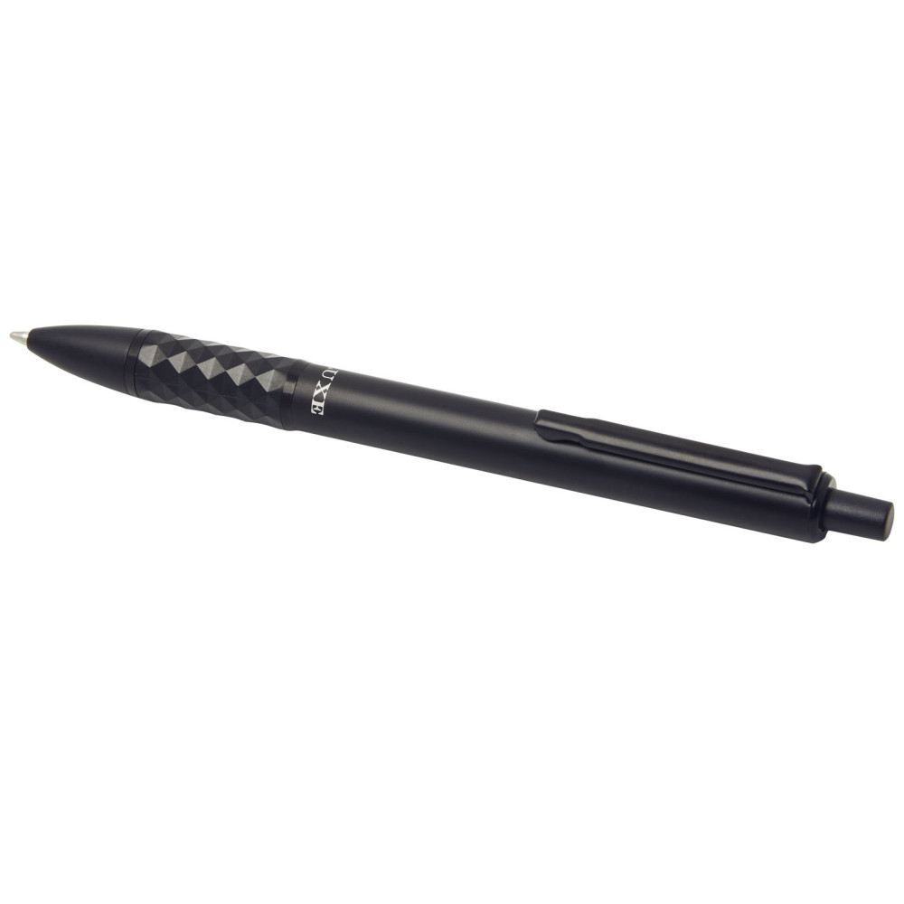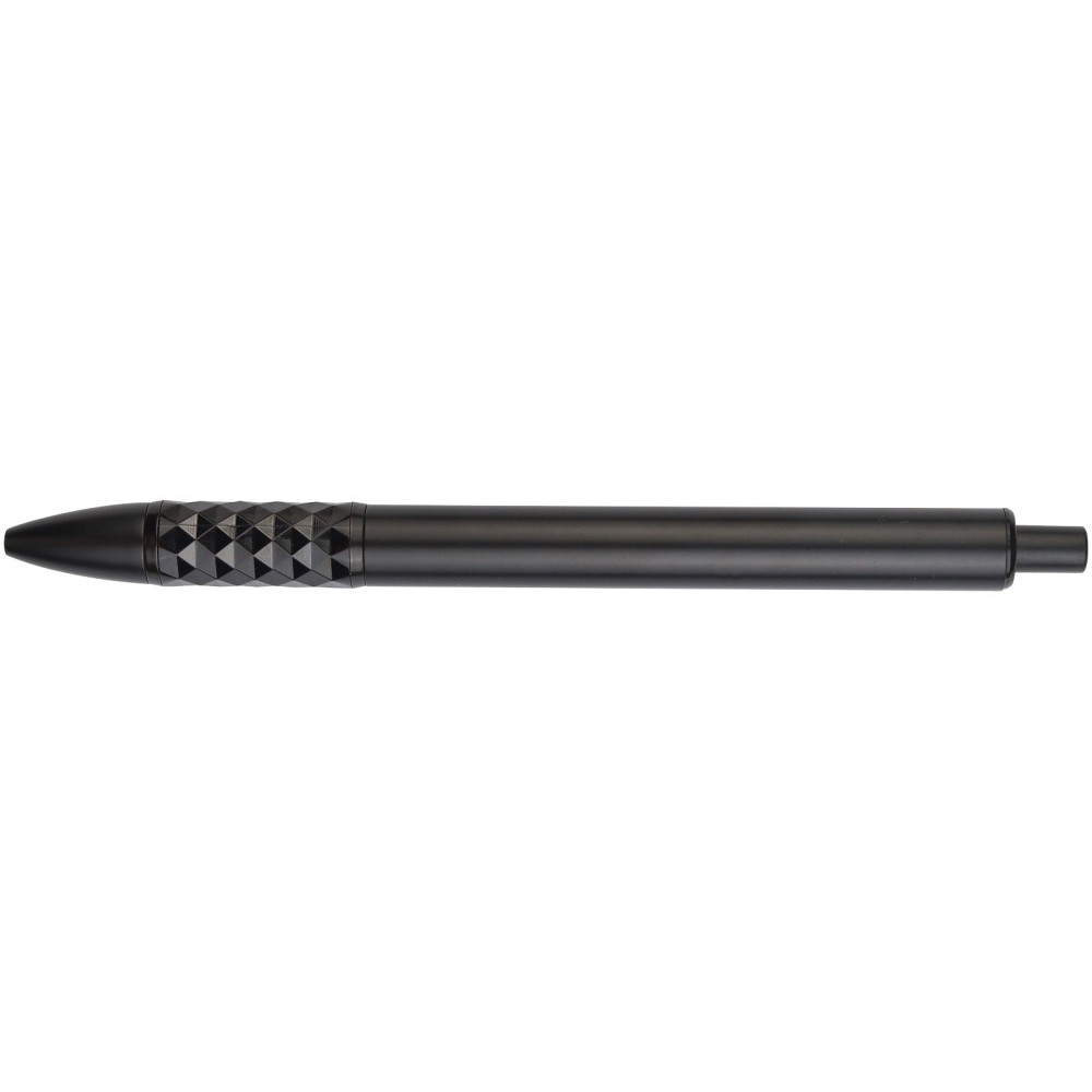 Beatriz kuglepen af genvundet messing (sort refill) Kuglepen med farvet spraybelægning. Hætten og spidsen er lavet af messing, hylsteret er lavet af genvundet messing, og clipsen er lavet af jern. Blækfarve: Sort Skrivelængde: 1000 meter. Spidsstørrelse: 1,0 mm. Leveres i en æske.