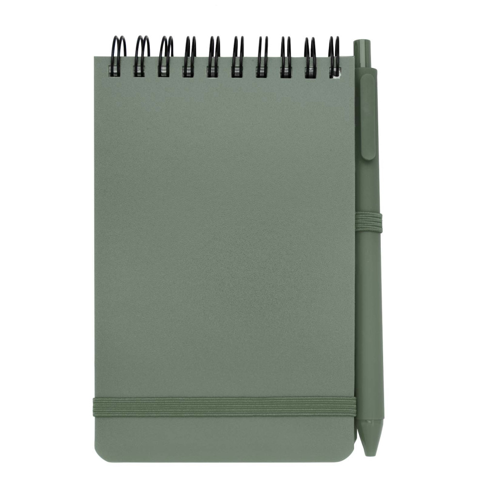 Thalaasa A6 recycled hardcover notesbog med kuglepen (sort refill) Kontakt os for pris Firmalogo kan tilføjes på dette produkt Denne Thalaasa hardcover notesbog i A6 er lavet af ocean bound recycled plast med 80 linjerede ark cremefarvet papir på 70 g/m². Notesbogen har afrundede hjørner, lukning med elastik og en løkke til en pen. Kuglepennen med sort blæk er også fremstillet af ocean bound recycled plast. Skrivelængde: 1000 meter. Spidsstørrelse: 1,0 mm. Farver Havblå Meleret grøn Ensfarvet sort Søger du reklameartikler og profiltøj? Kontakt vores team i dag, og lad os hjælpe dig med den rigtige løsning til din virksomhed 70 260 760 Kontakt os 70 260 760 Kontakt os