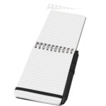 Flipper klæbrig notesblok med kuglepen (sort refill) Sticky notesblok med kuglepen. Notesblokken har 30 ark linjeret hvidt papir på 70 g/m2 (8 x 12 cm). Den har også 25 flerfarvede (5 x 1,2 cm) og 25 gule (7,5 x 7,5 cm) sticky notes, begge typer er af papir på med 70 g/m2. Kuglepennens cylinder er fremstillet af genvundet papir. Blækfarve: Sort Skrivelængde: […]