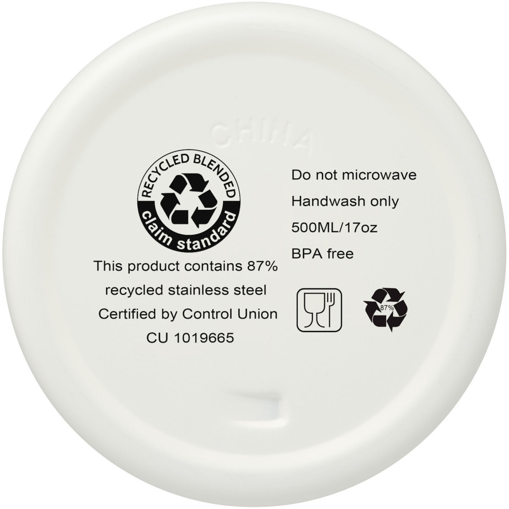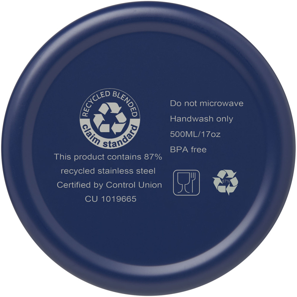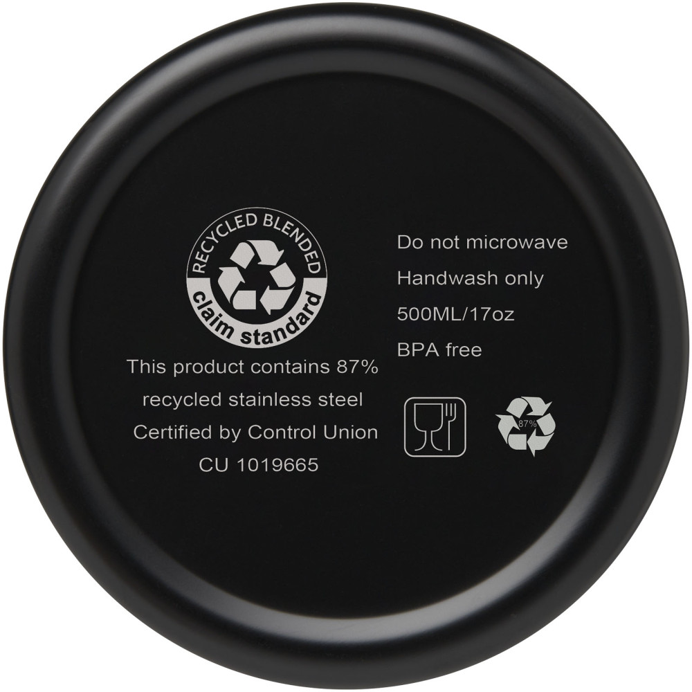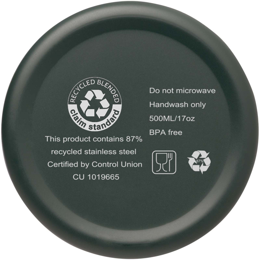Vasa 500 ml RCS certificeret genvundet, vakuumisoleret flaske af rustfrit stål og kobber Kontakt os for pris Firmalogo kan tilføjes på dette produkt Hold dine drikkevarer varme i 12 timer eller kolde i 24 timer med Vasa kobber vakuumisoleret flaske. Med dobbeltvæg og fremstillet af RCS certificeret rustfrit stål med vakuumisolering og en kobberbelagt indervæg betyder, at dine drikkevarer holdes varme eller iskolde, afhængigt af dine behov. BPA fri og testet og godkendt i henhold til tysk lovgivning om fødevaresikkerhed (LFGB) og for indhold af phthalater i henhold til REACH. Kapacitet: 500 ml. Leveres i en æske fremstillet af ansvarligt og bæredygtigt materiale. Farver Hvid Rød Bronze Blå Grøn flash Sølv Ensfarvet sort Søger du reklameartikler og profiltøj? Kontakt vores team i dag, og lad os hjælpe dig med den rigtige løsning til din virksomhed 70 260 760 Kontakt os 70 260 760 Kontakt os